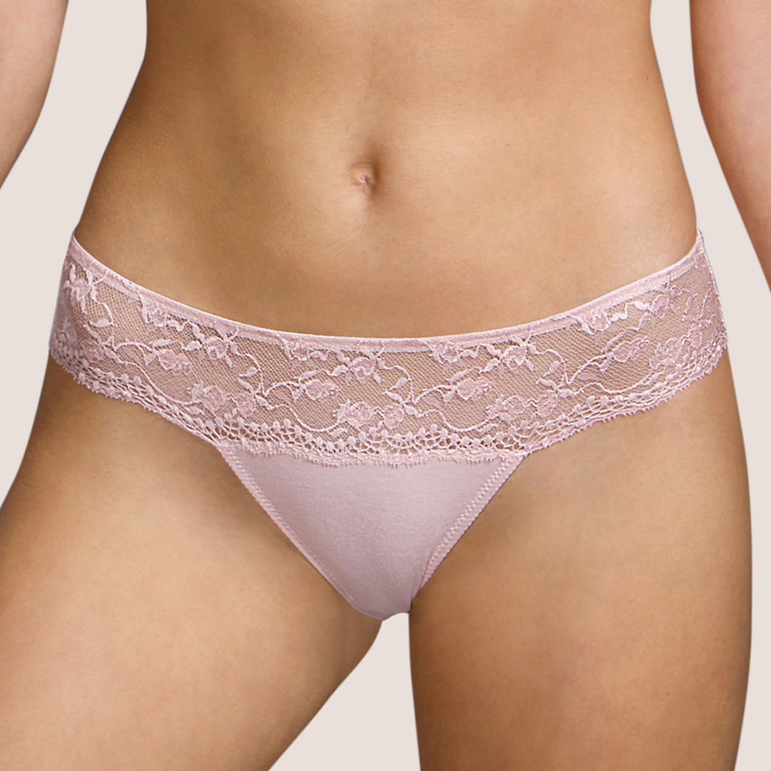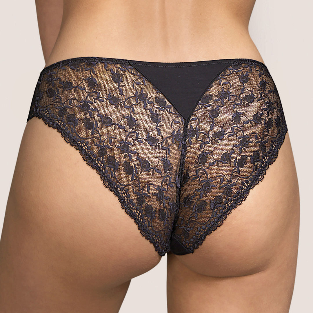A band of lace a the top front part embellishes the brief. Colors are elegant neutral and makeup, flattering to the skin. Moonrock is a false black. -